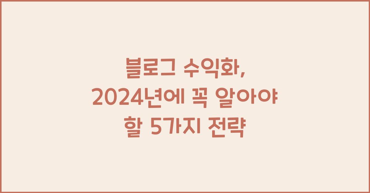 블로그 수익화를 위한 첫걸음: 주제 선택과 타겟 설정블로그 수익화는 단순한 글쓰기 이상의 도전입니다. 성공적인 블로그는 명확한 주제와 관심 있는 청중을 한목소리로 모으는 것에서 비롯됩니다. 첫 번째 전략은 마음에 드는 주제를 선택하는 것입니다. 주제가 정해지면 그에 맞는 타겟 독자를 설정해야 합니다. 예를 들어, 여행에 대한 블로그를 운영할 생각이라면, 여행 마니아, 가족 여행객, 그리고 예산을 고려하는 여행객을 타겟으로 설정할 수 있습니다. 이 과정에서 필요한 것은 진정성과 열정입니다. 해당 주제를 사랑하지 않으면 블로그 수익화는 어려워질 것입니다.블로그 수익화 더 알아보기주제를 선택할 때는 꼭 개인의 경험이나 관심사를 고려해야 합니다. 누구나 알고 있는 주제보다, 특별한 경험이 담긴 주제가 더 매력적..