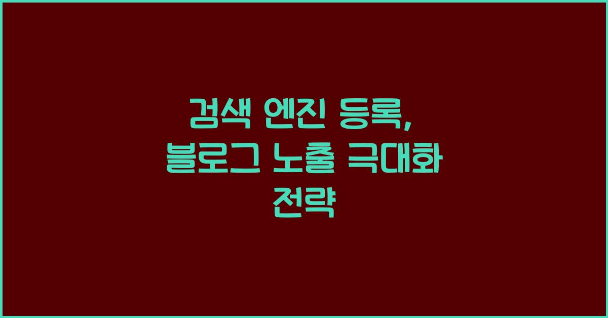 안녕하세요! 블로그 운영을 하다 보면 사람들이 가장 궁금해 하는 것이 **검색 엔진 등록**입니다. 검색 엔진에 나의 블로그를 등록하고, 노출을 극대화하는 방법은 무수히 많은 블로그 운영자들이 끊임없이 연구하고 실천해 온 주제입니다. 정말 간단해 보이기도 하지만, 실상을 들여다보면 많은 요소들이 얽혀 있죠. 오늘은 검색 엔진 등록에 필요한 5가지 전략을 알려드릴게요. 이를 통해 여러분의 블로그가 더 많은 사람들에게 노출되기를 바랍니다!