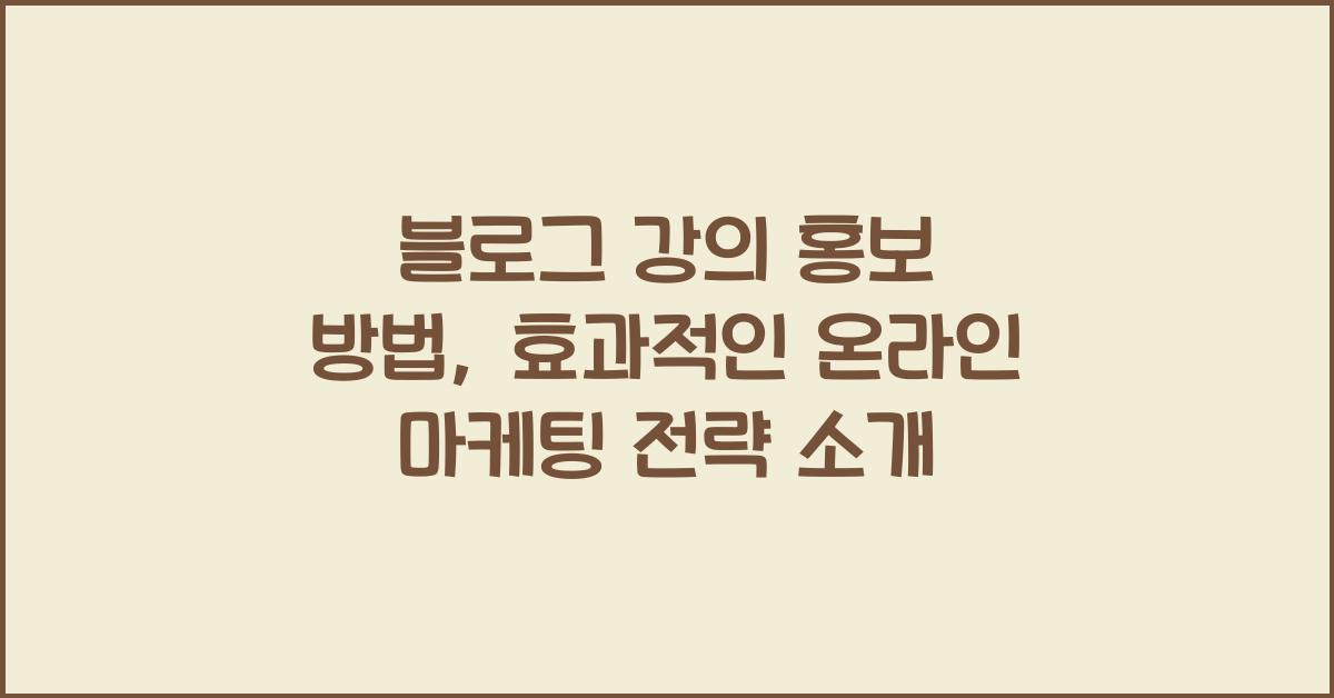 블로그 강의 홍보 방법은 SEO 최적화, 소셜 미디어 활용, 이메일 마케팅 등의 다양한 전략을 통해 강의를 효과적으로 알리는 방법입니다.